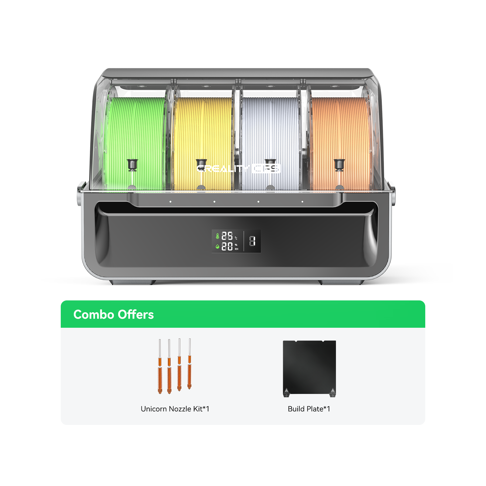 Unleash your full creative potential with the Creality CFS (Creality Filament System) — the smart multi-filament solution that brings color, automation, and precision to your 3D printing workflow. Designed to integrate seamlessly with the latest Creality printers, the CFS allows up to 16-color printing, advanced filament control, and moisture-proof storage in one compact, intelligent system.